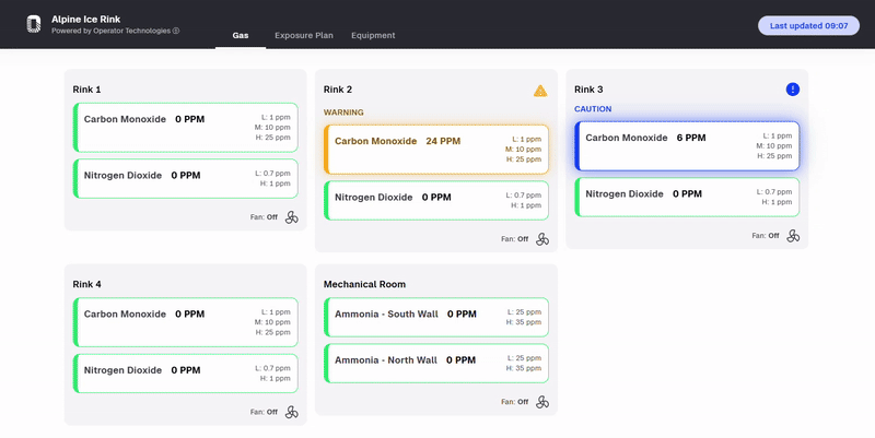 Sample dashboard of gas leak detection monitoring system at an ice rink